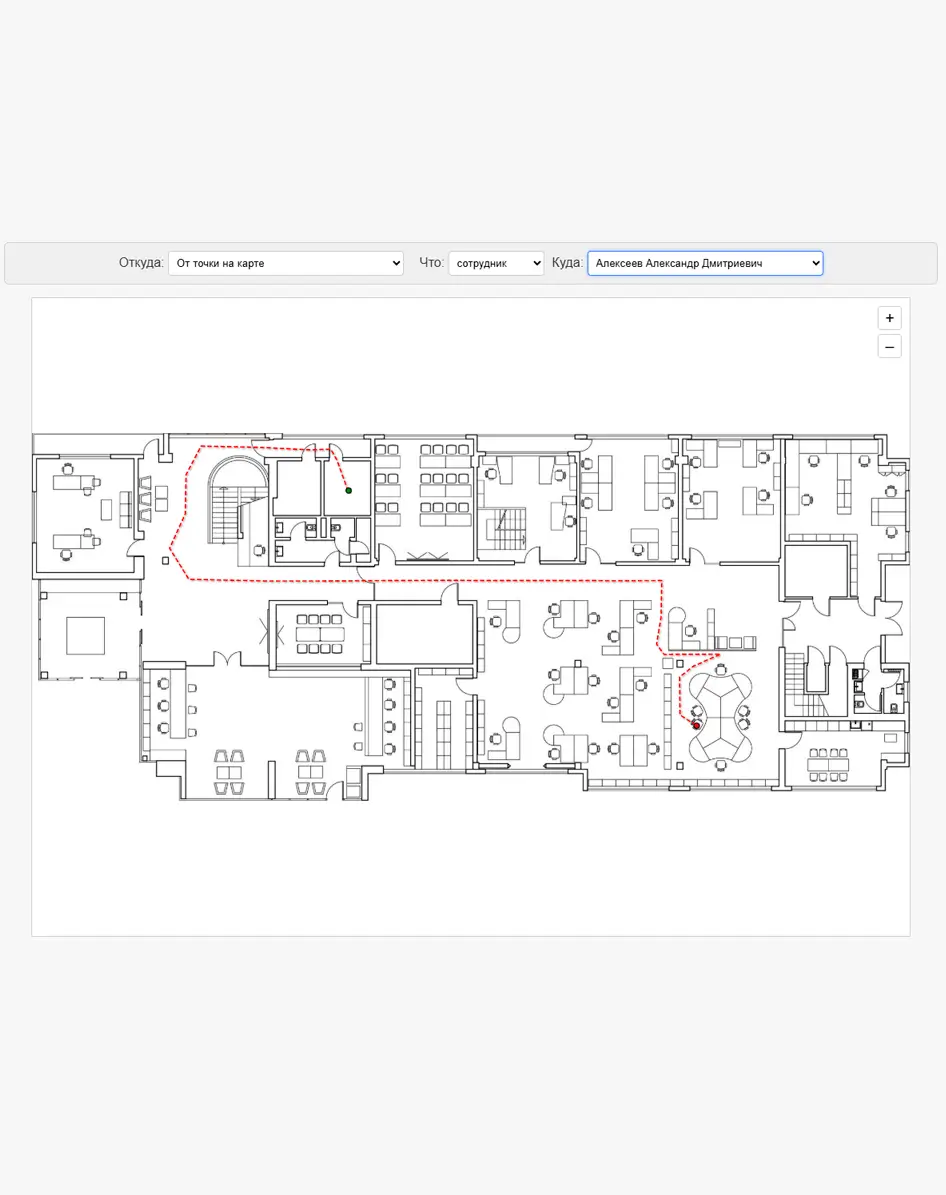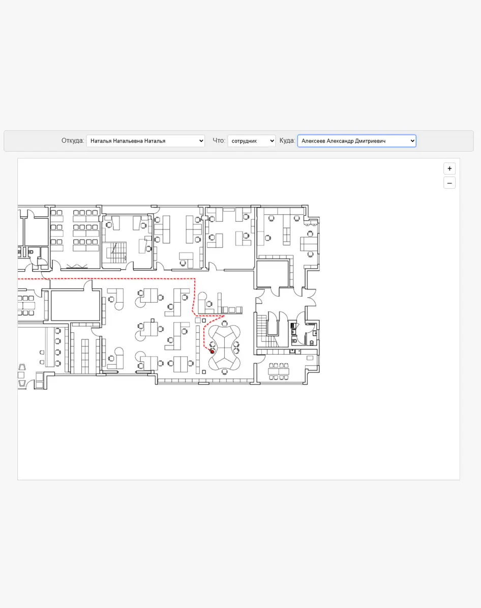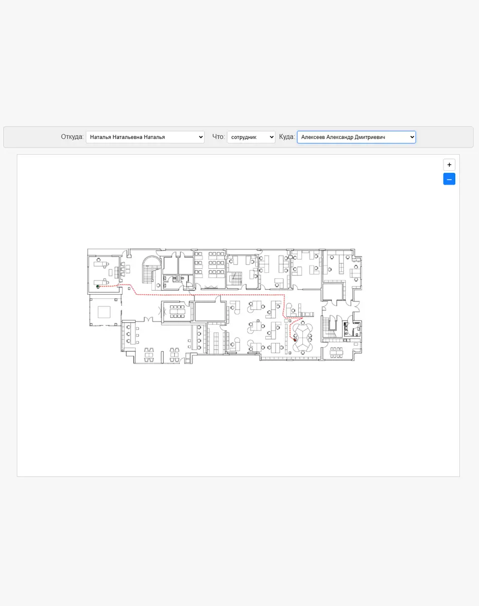 Инновационное веб-приложение, позволяющее легко ориентироваться в офисном пространстве. Найдите сотрудников, помещения или любые объекты на карте вашего офиса буквально в один клик.