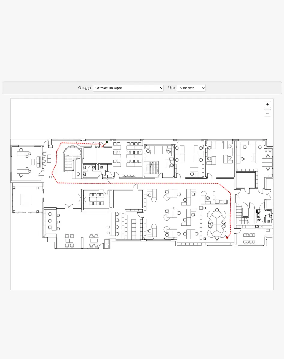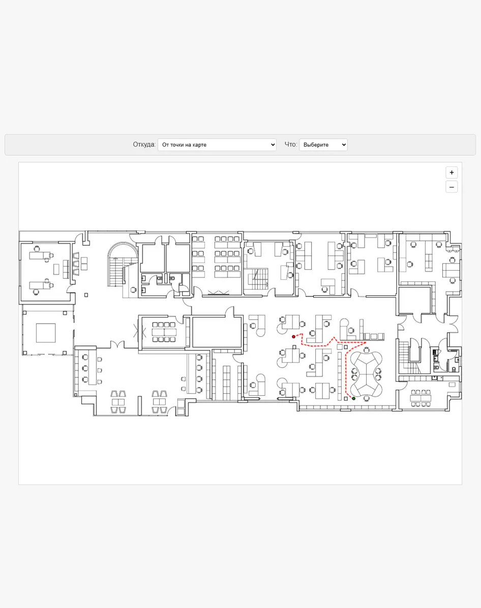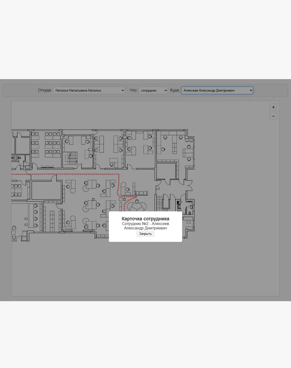 Инновационное веб-приложение, позволяющее легко ориентироваться в офисном пространстве. Найдите сотрудников, помещения или любые объекты на карте вашего офиса буквально в один клик.